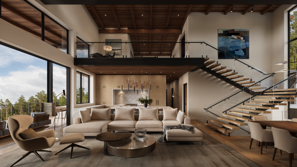 Nestled in a serene, secluded location, this mountain modern home combines sleek contemporary design with the beauty of its natural surroundings. Large windows frame stunning mountain views, while rich materials like stone, wood, and corten steel create a cozy, inviting atmosphere. The home offers a peaceful, private retreat, blending modern luxury with natural elegance.