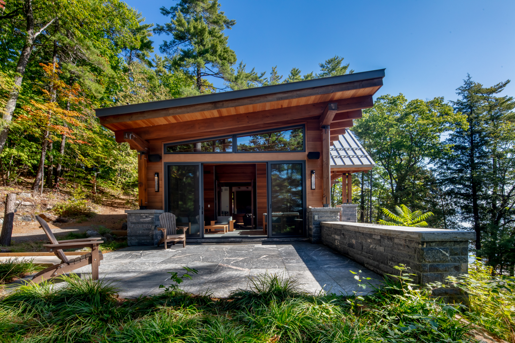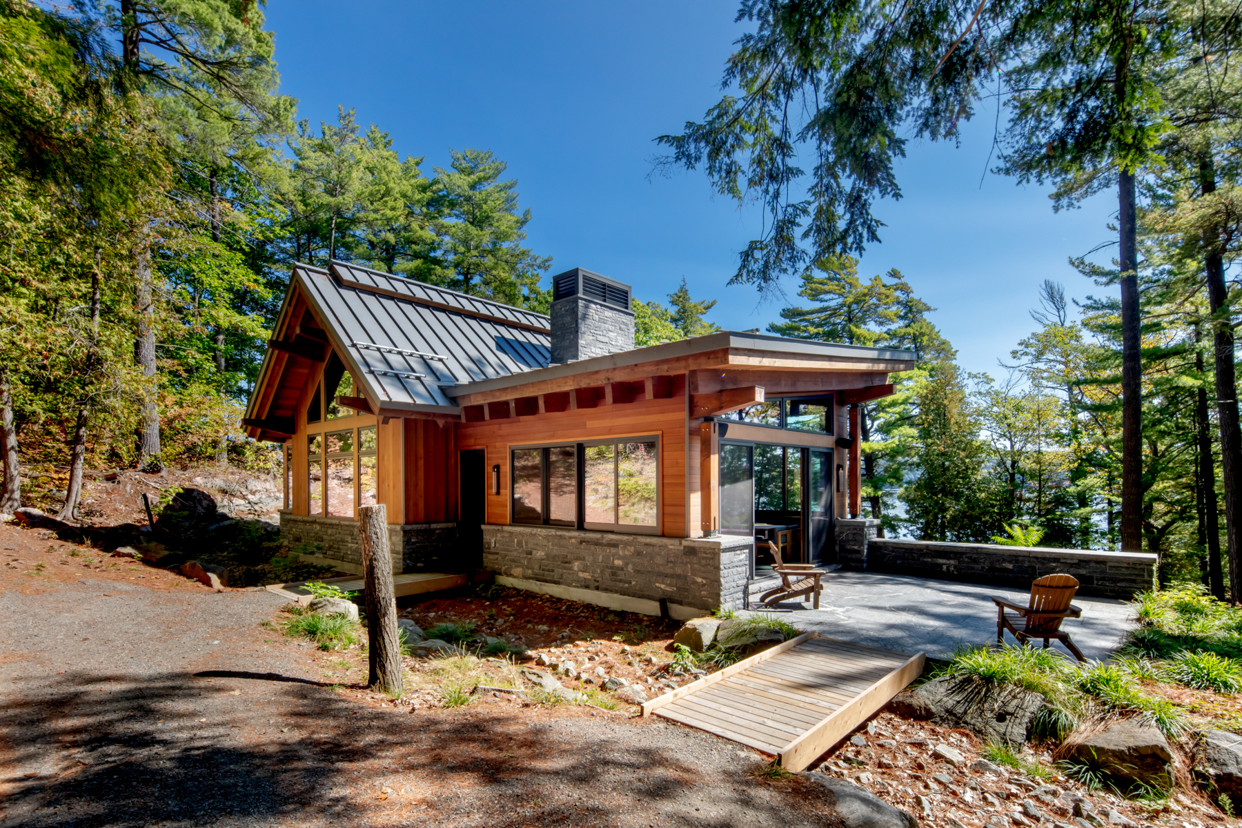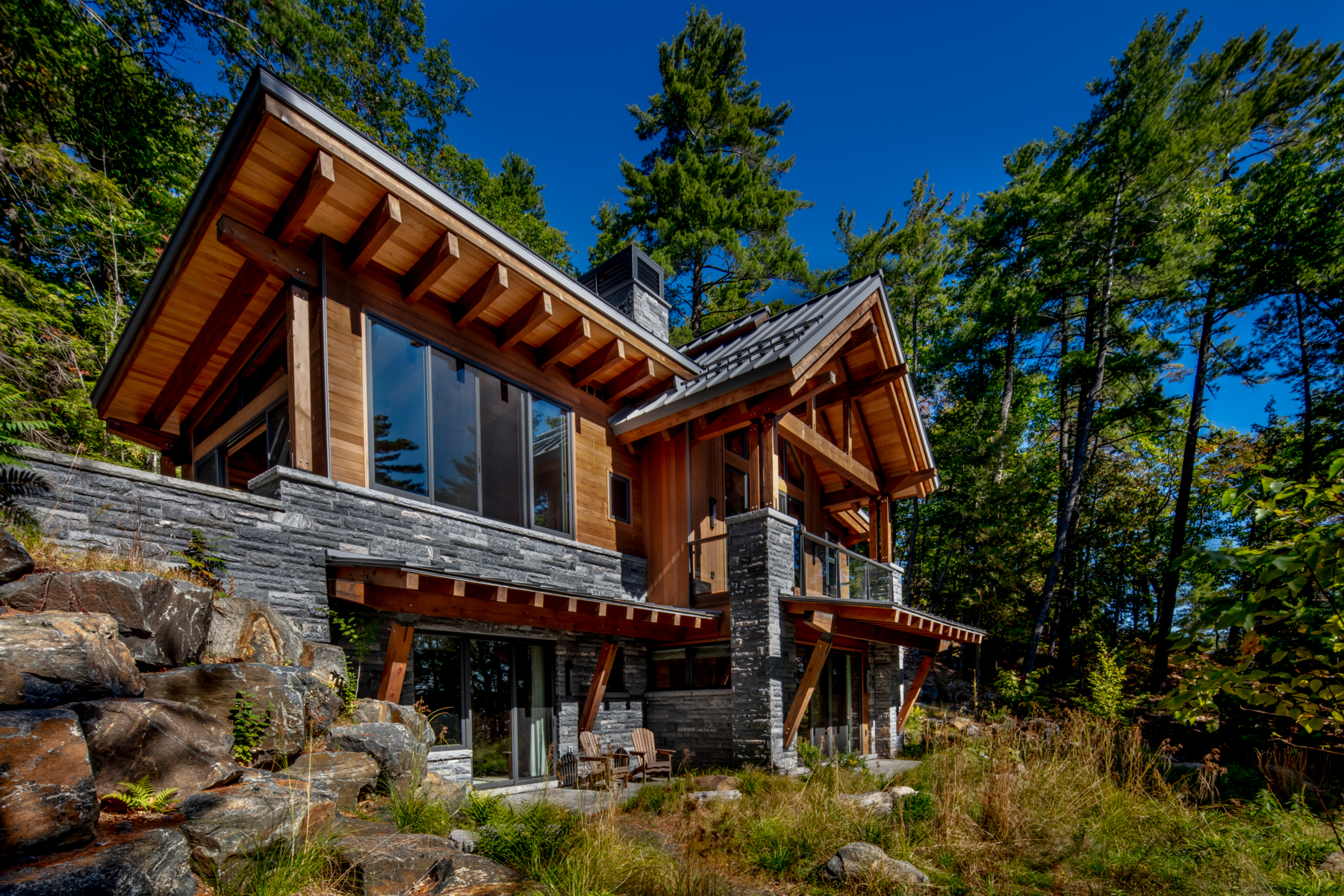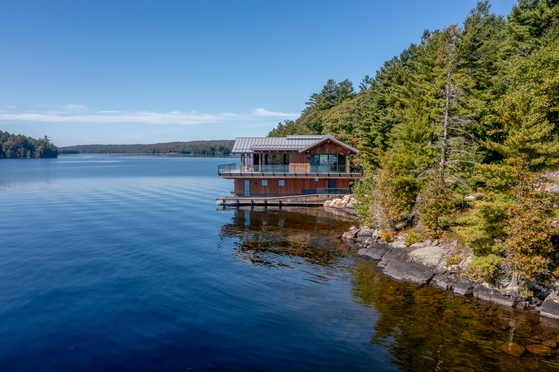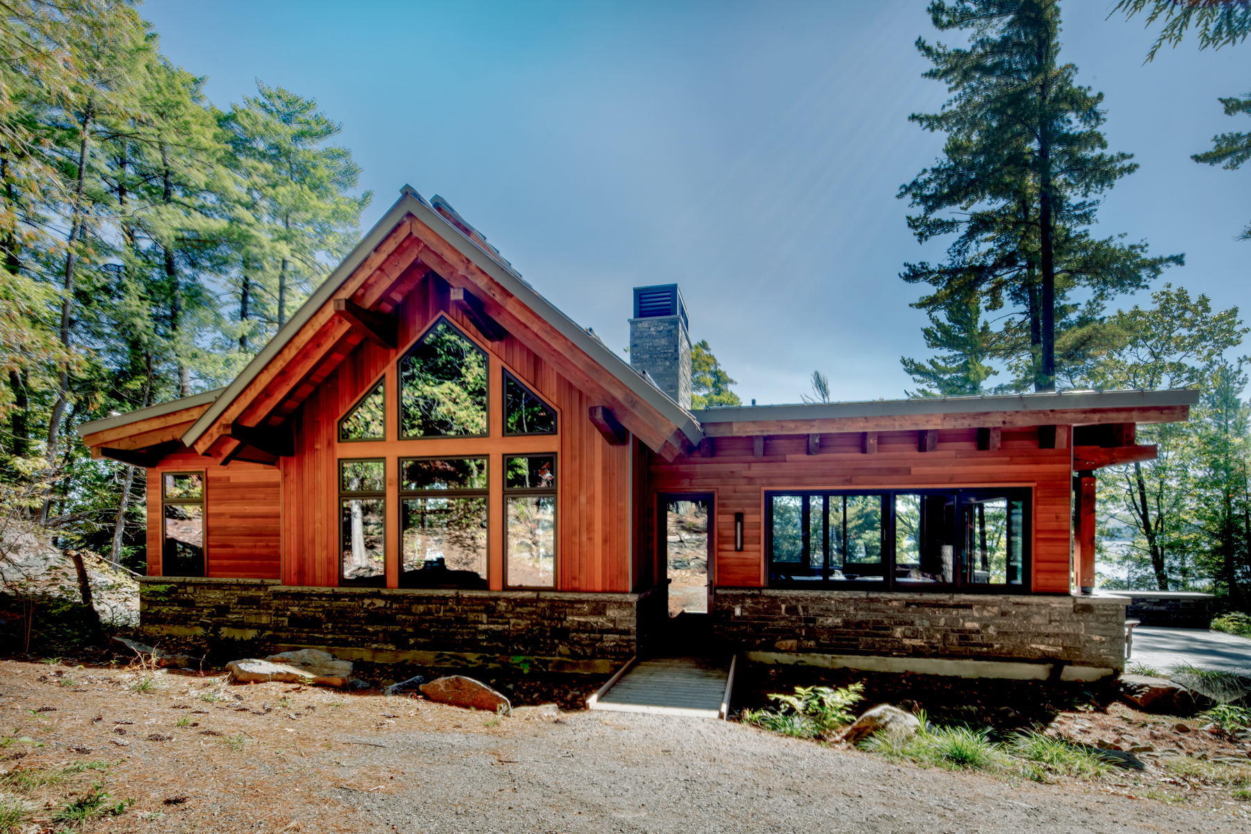 This spectacular island in Muskoka is over five acres. KS|a has been retained to design a collection of structures including a main lodge, several cabins, two boat houses and a library/ museum. A common language ties all of the buildings together in a mountain vernacular that departs from the cottage style common in this area.