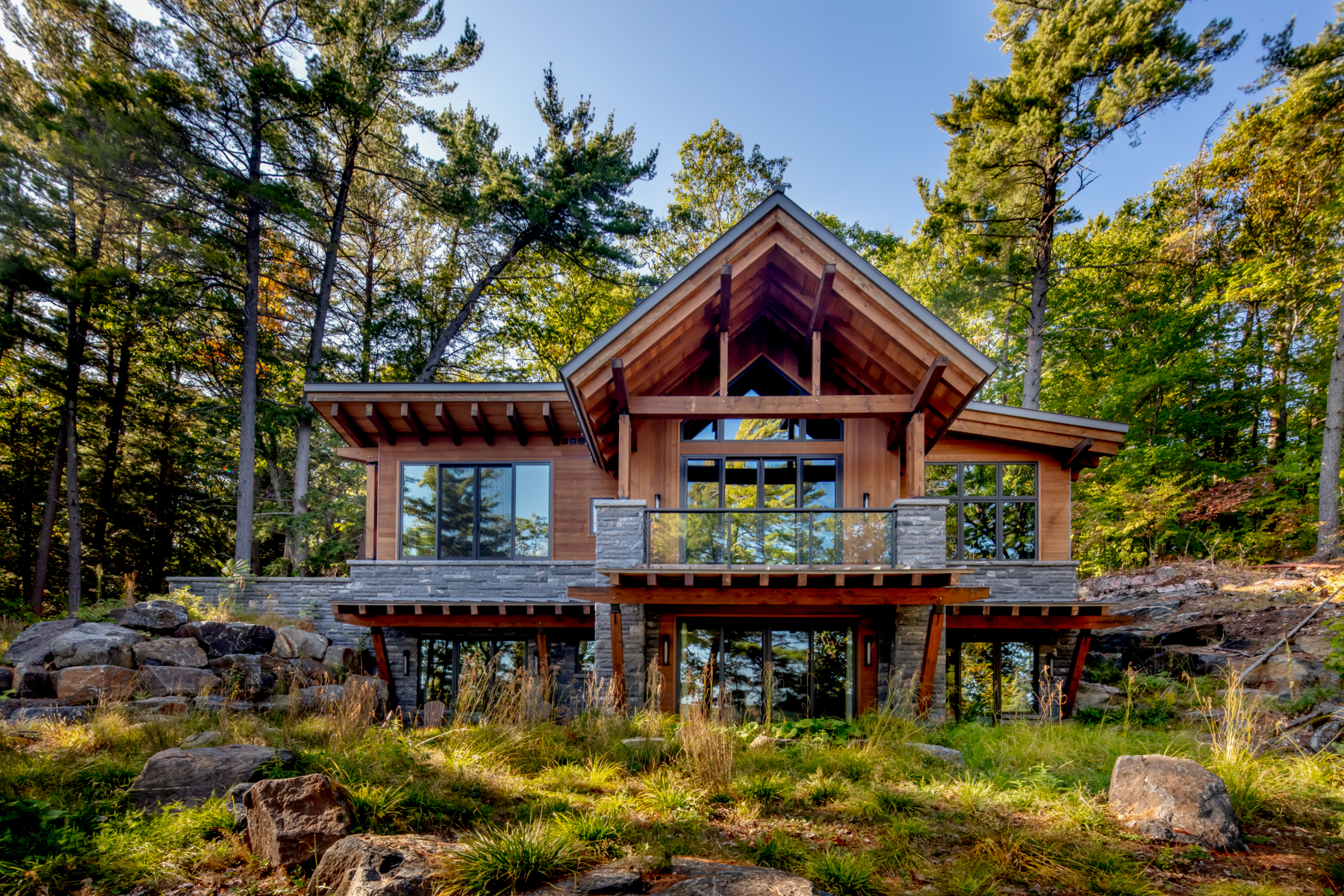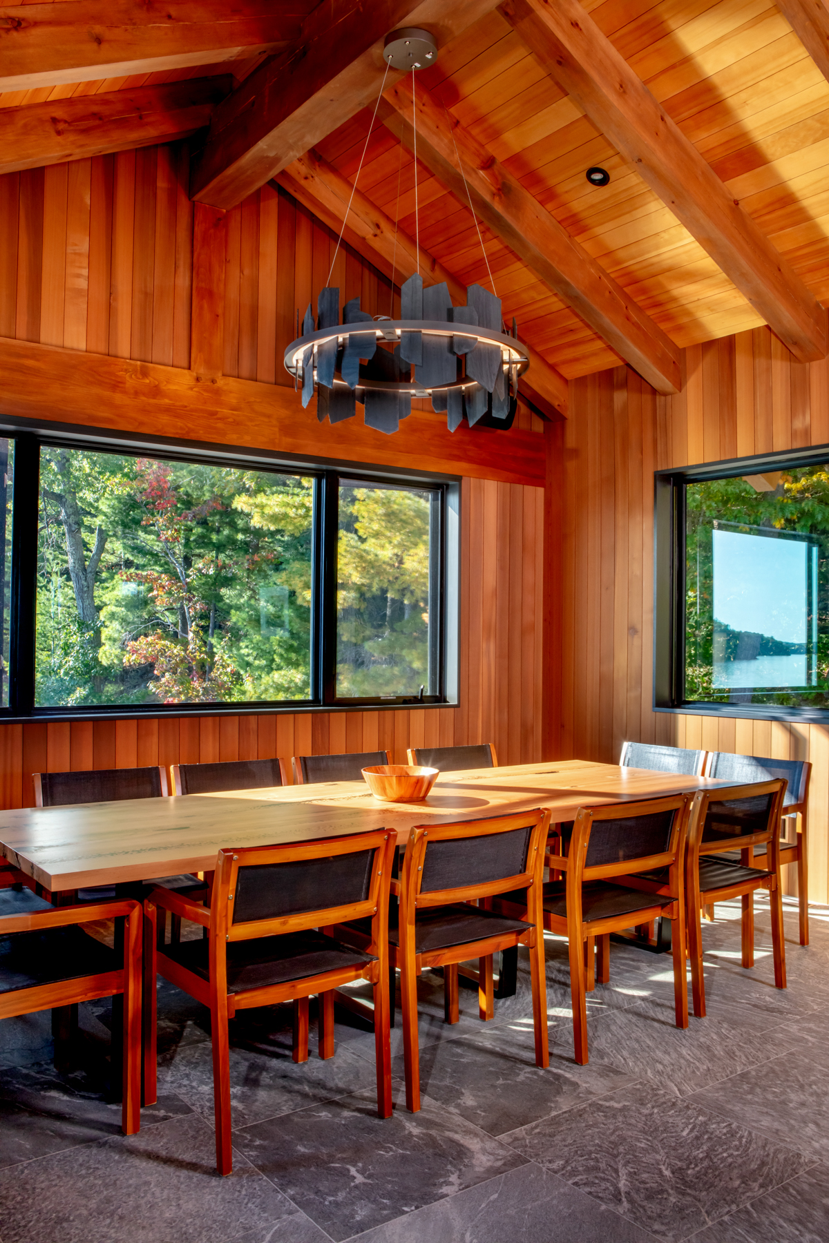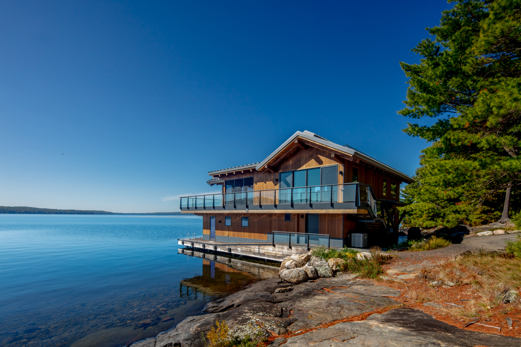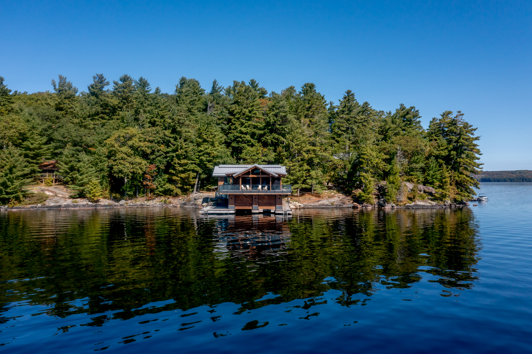This spectacular island in Muskoka is over five acres. KS|a has been retained to design a collection of structures including a main lodge, several cabins, two boat houses and a library/ museum. A common language ties all of the buildings together in a mountain vernacular that departs from the cottage style common in this area.