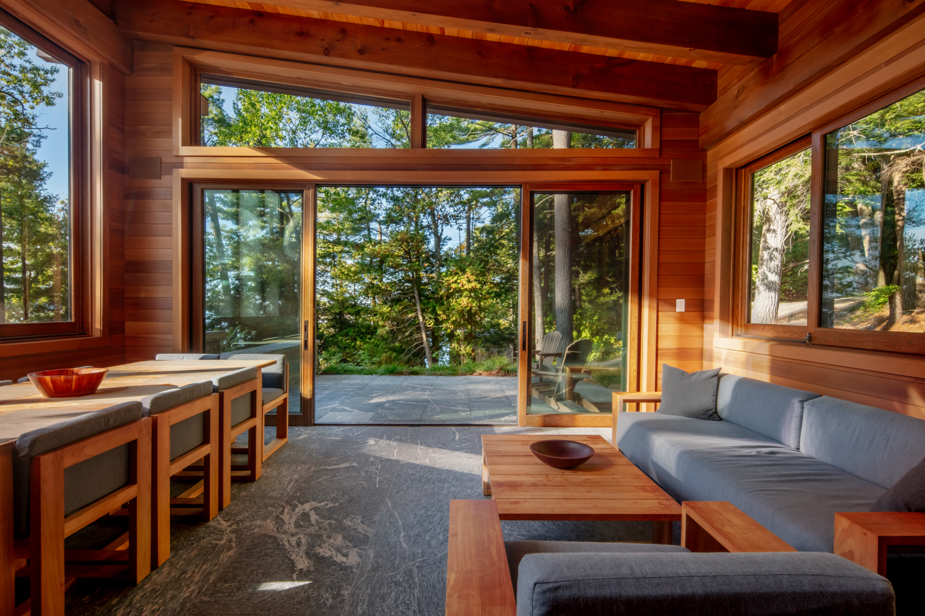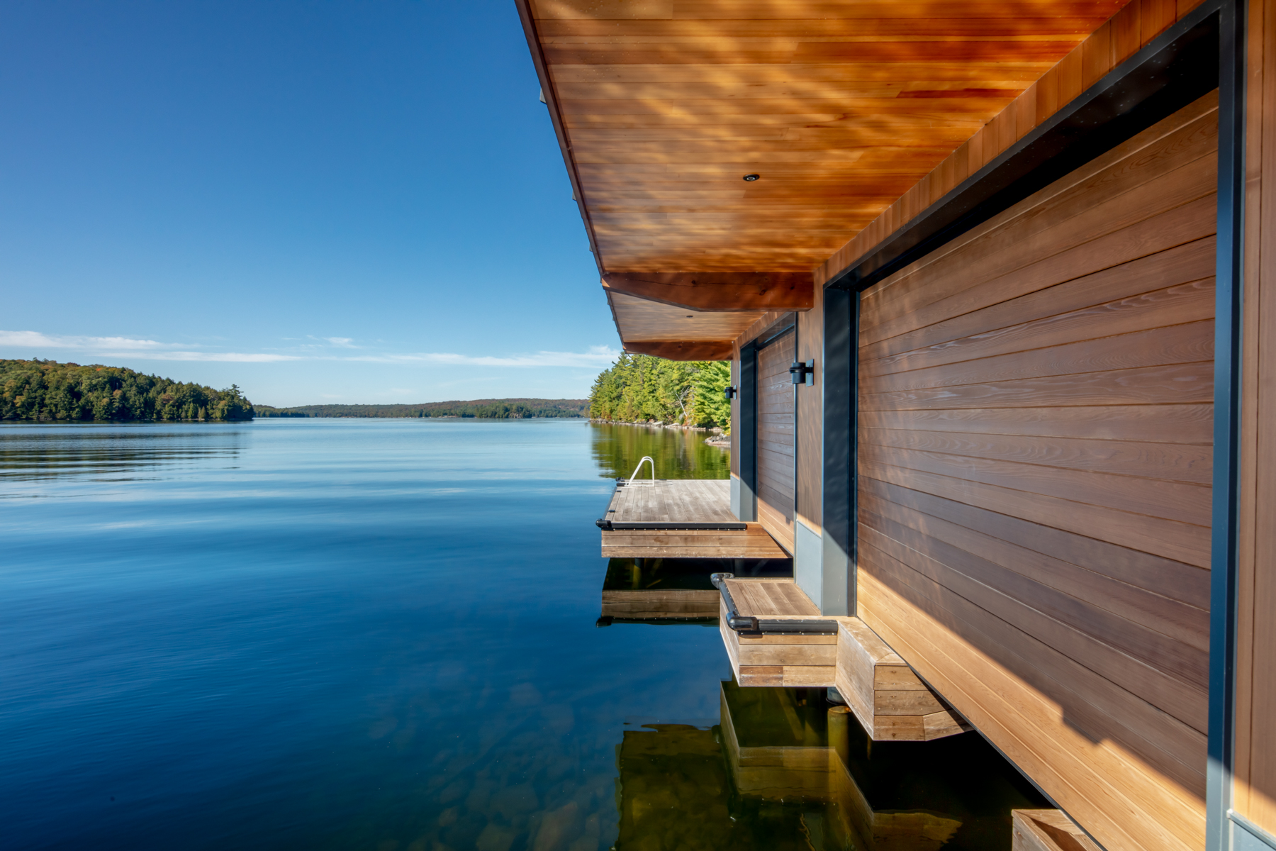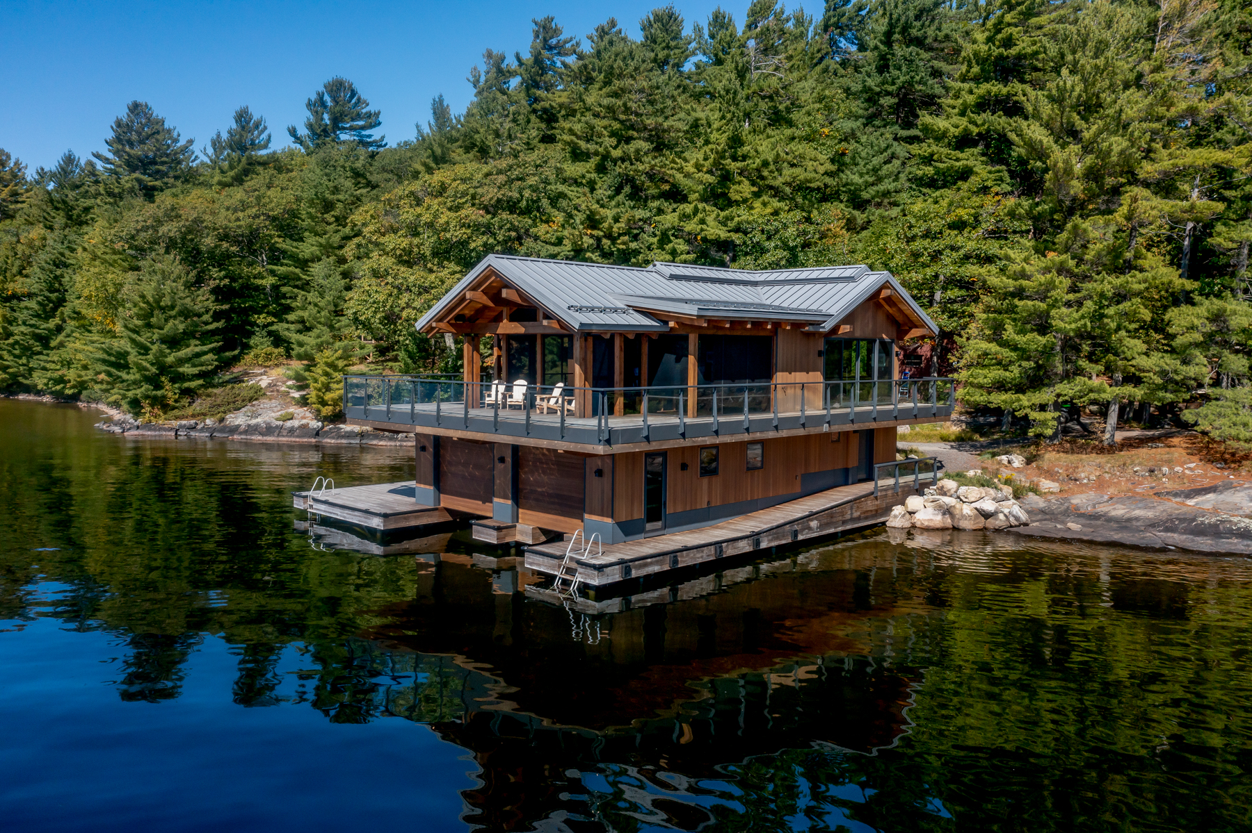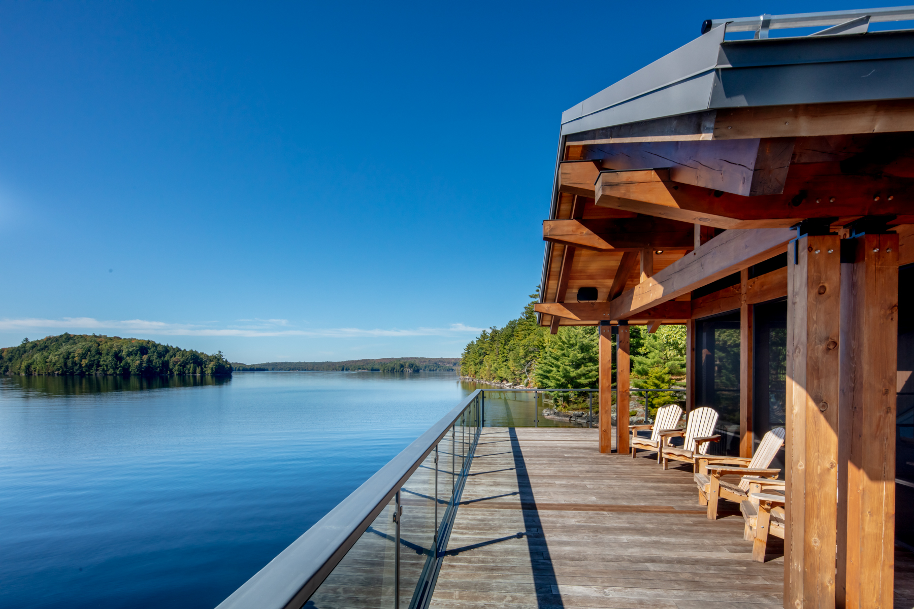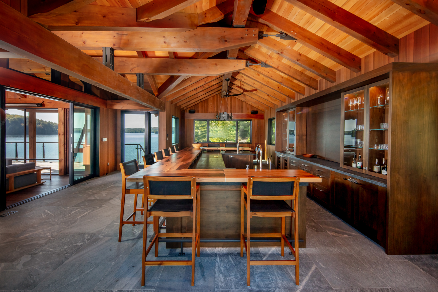 This spectacular island in Muskoka is over five acres. KS|a has been retained to design a collection of structures including a main lodge, several cabins, two boat houses and a library/ museum. A common language ties all of the buildings together in a mountain vernacular that departs from the cottage style common in this area.