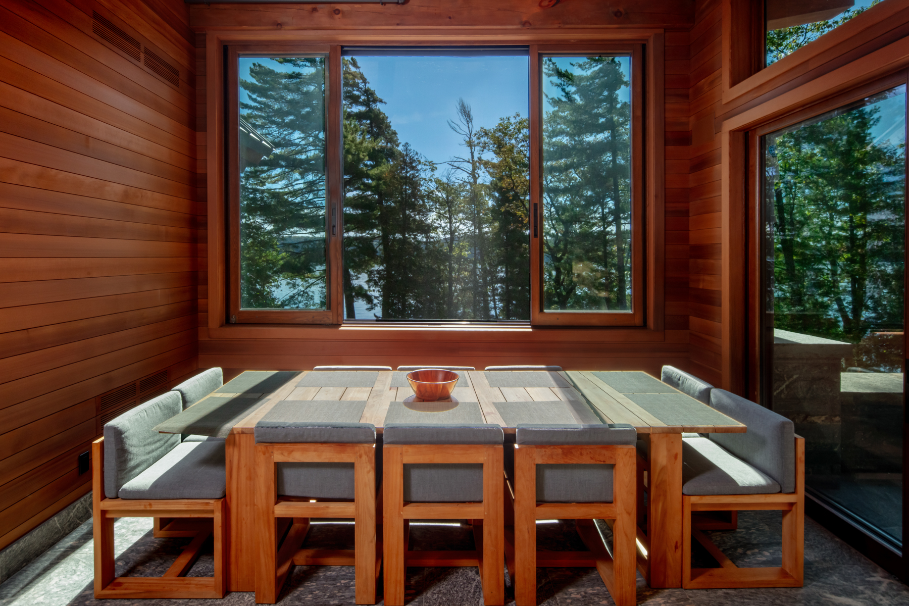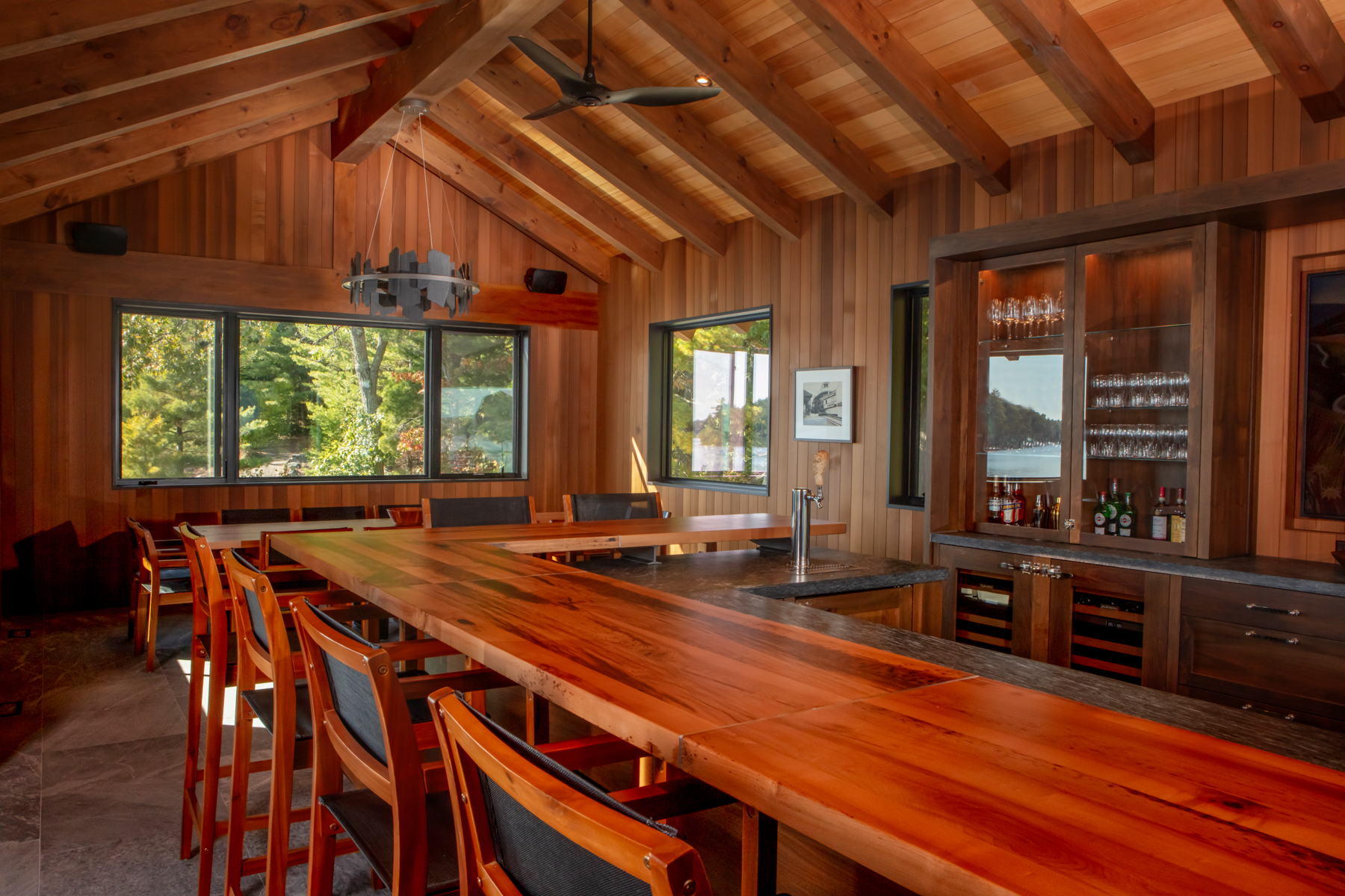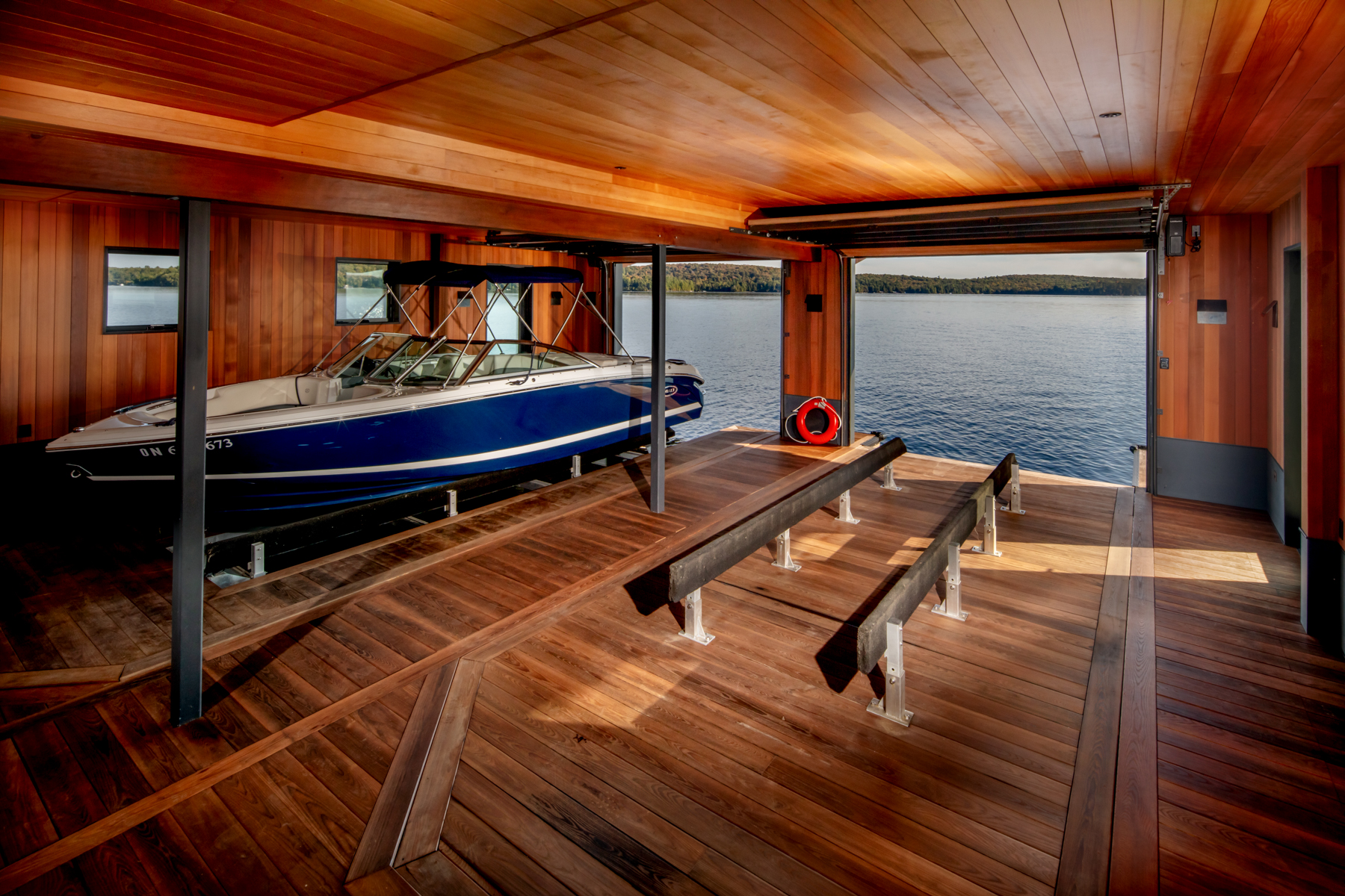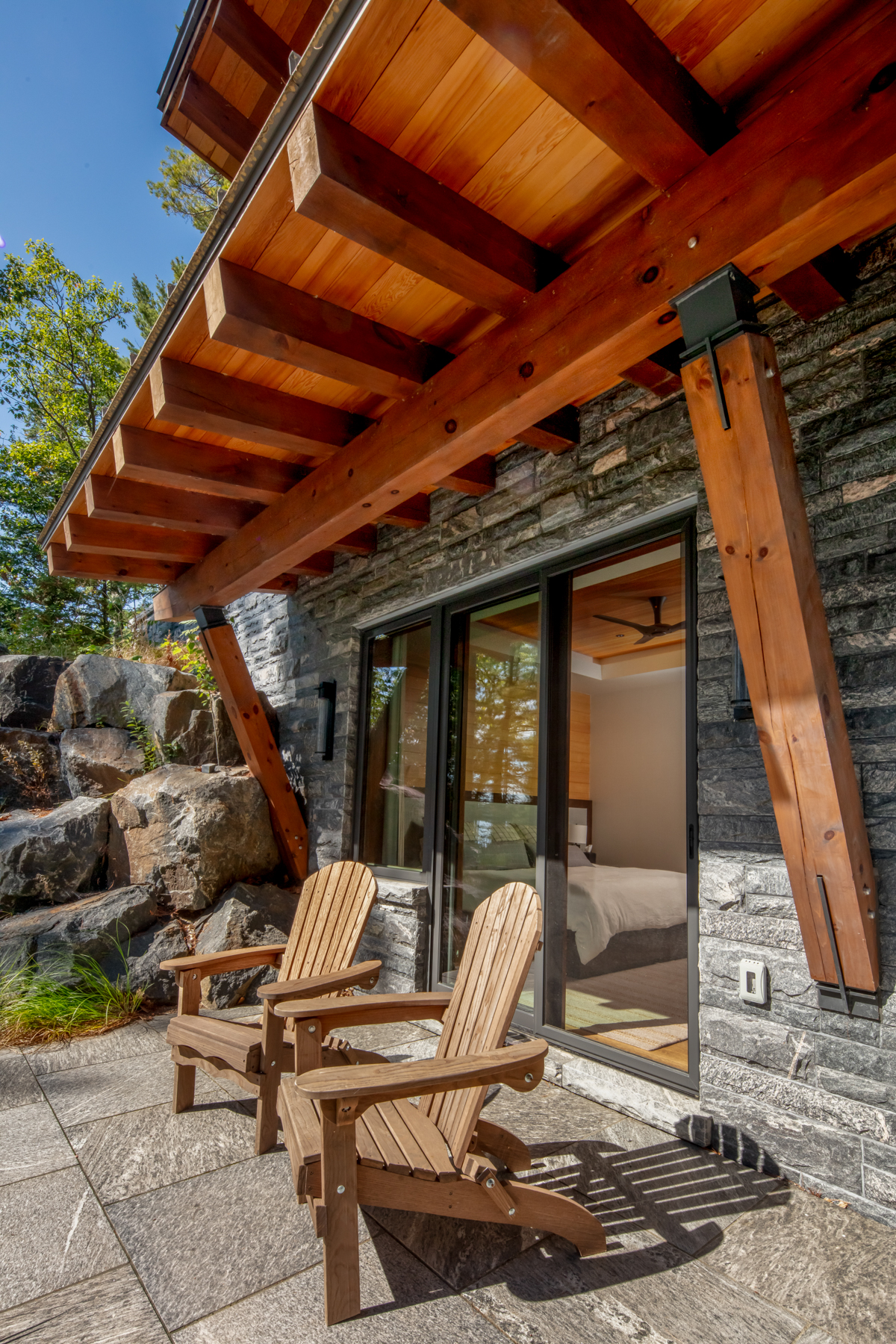 This spectacular island in Muskoka is over five acres. KS|a has been retained to design a collection of structures including a main lodge, several cabins, two boat houses and a library/ museum. A common language ties all of the buildings together in a mountain vernacular that departs from the cottage style common in this area.