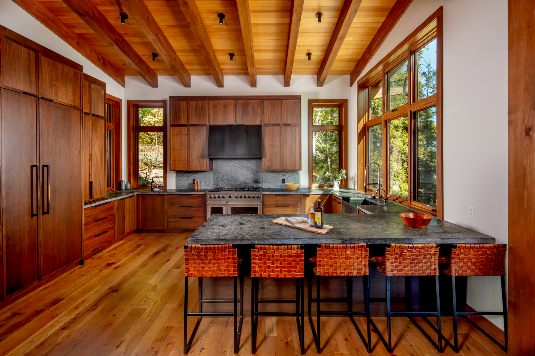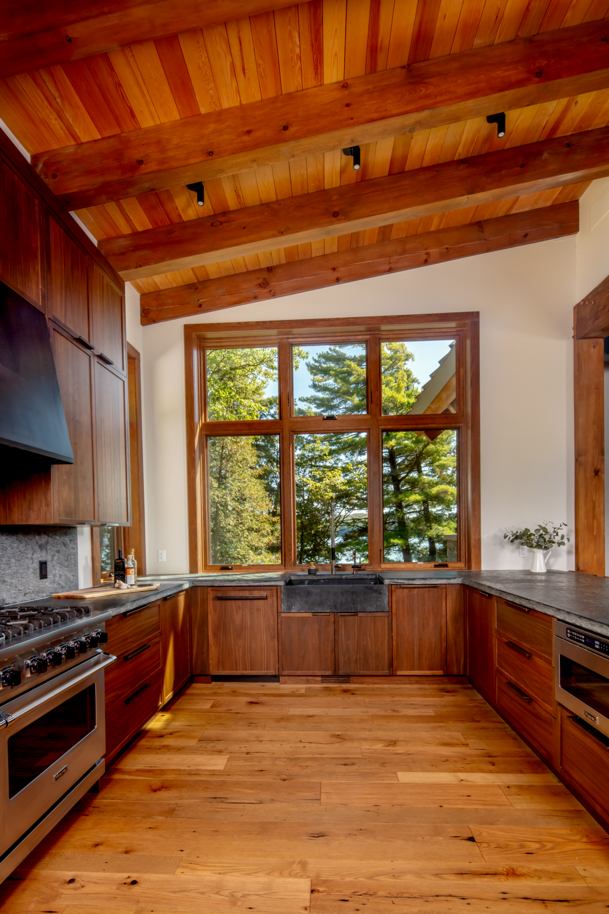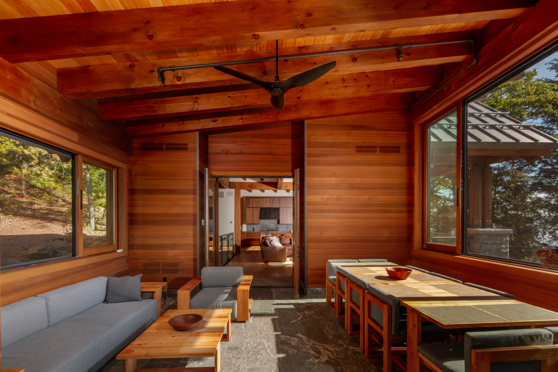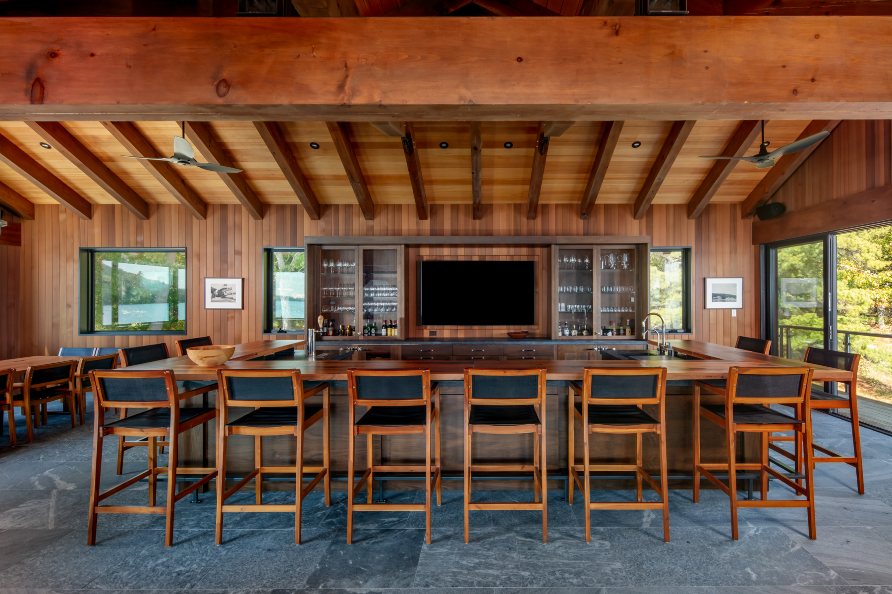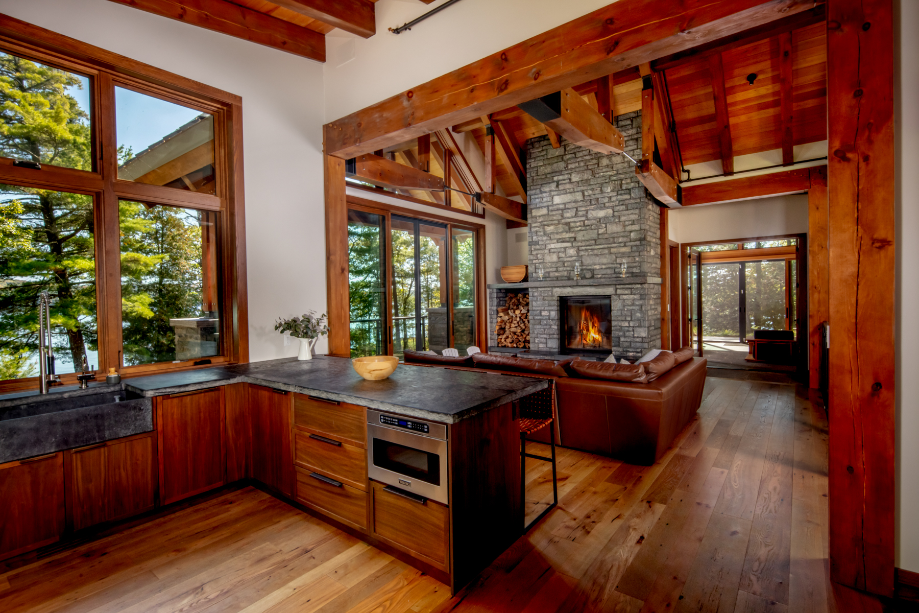 This spectacular island in Muskoka is over five acres. KS|a has been retained to design a collection of structures including a main lodge, several cabins, two boat houses and a library/ museum. A common language ties all of the buildings together in a mountain vernacular that departs from the cottage style common in this area.