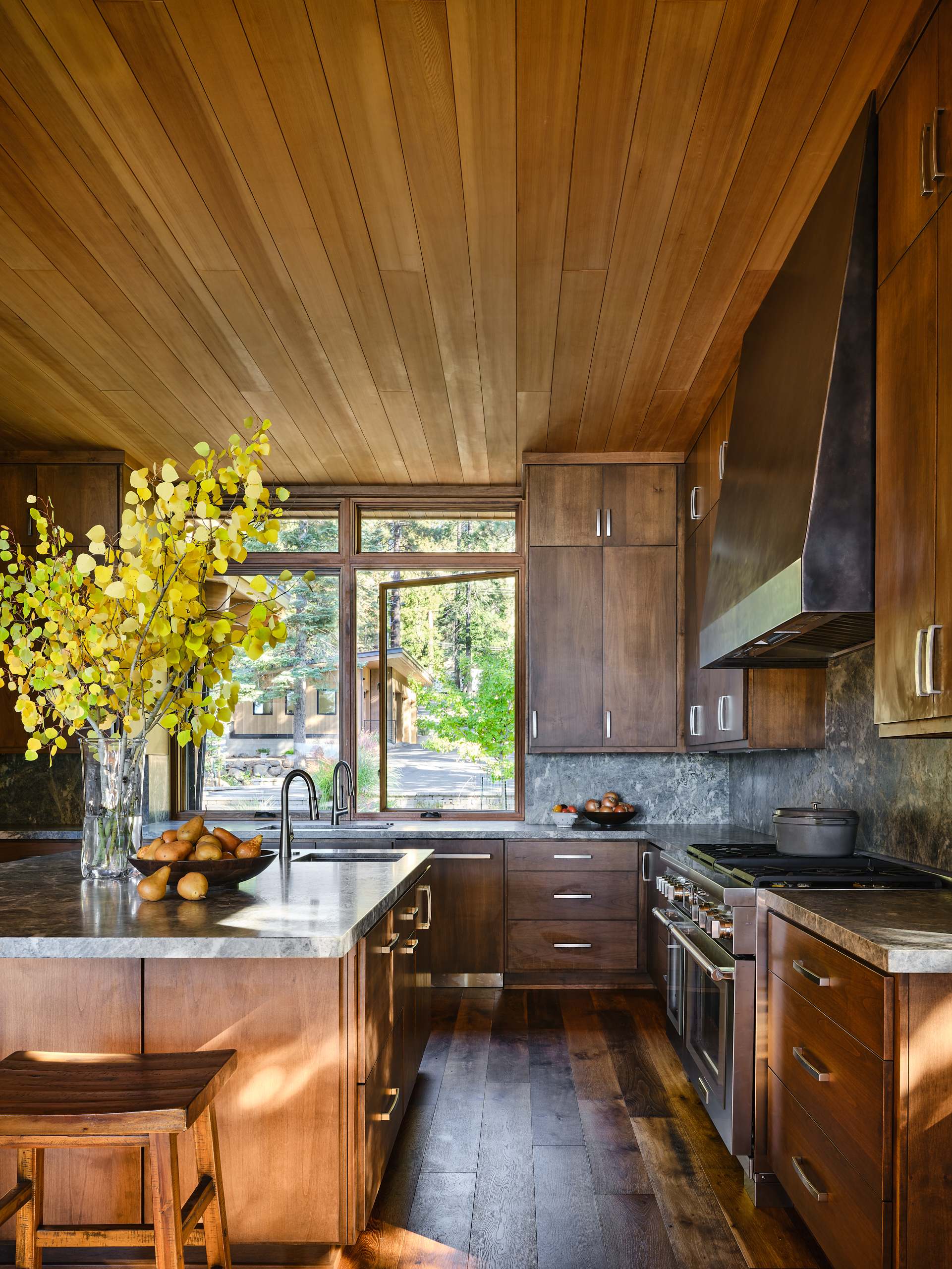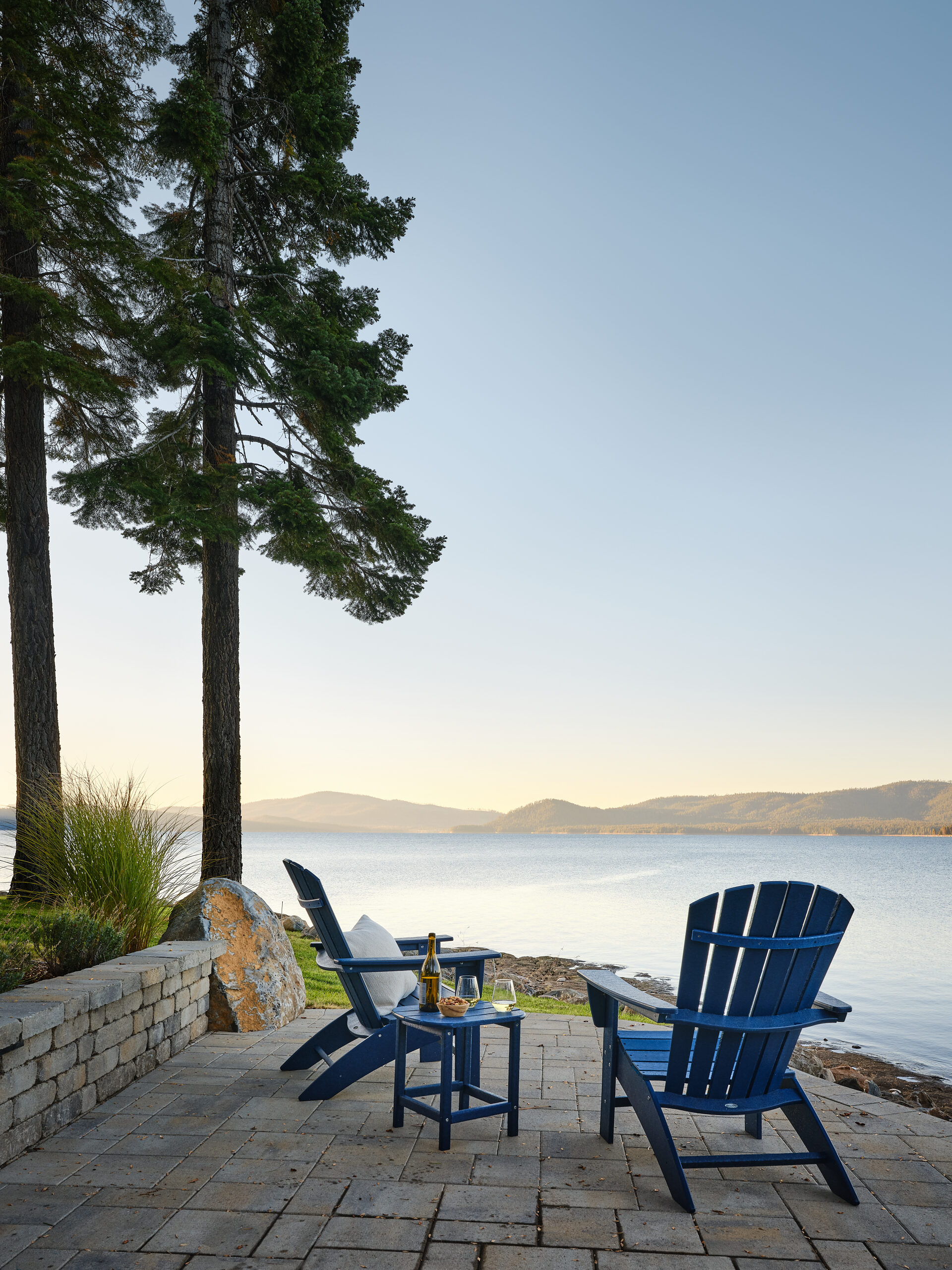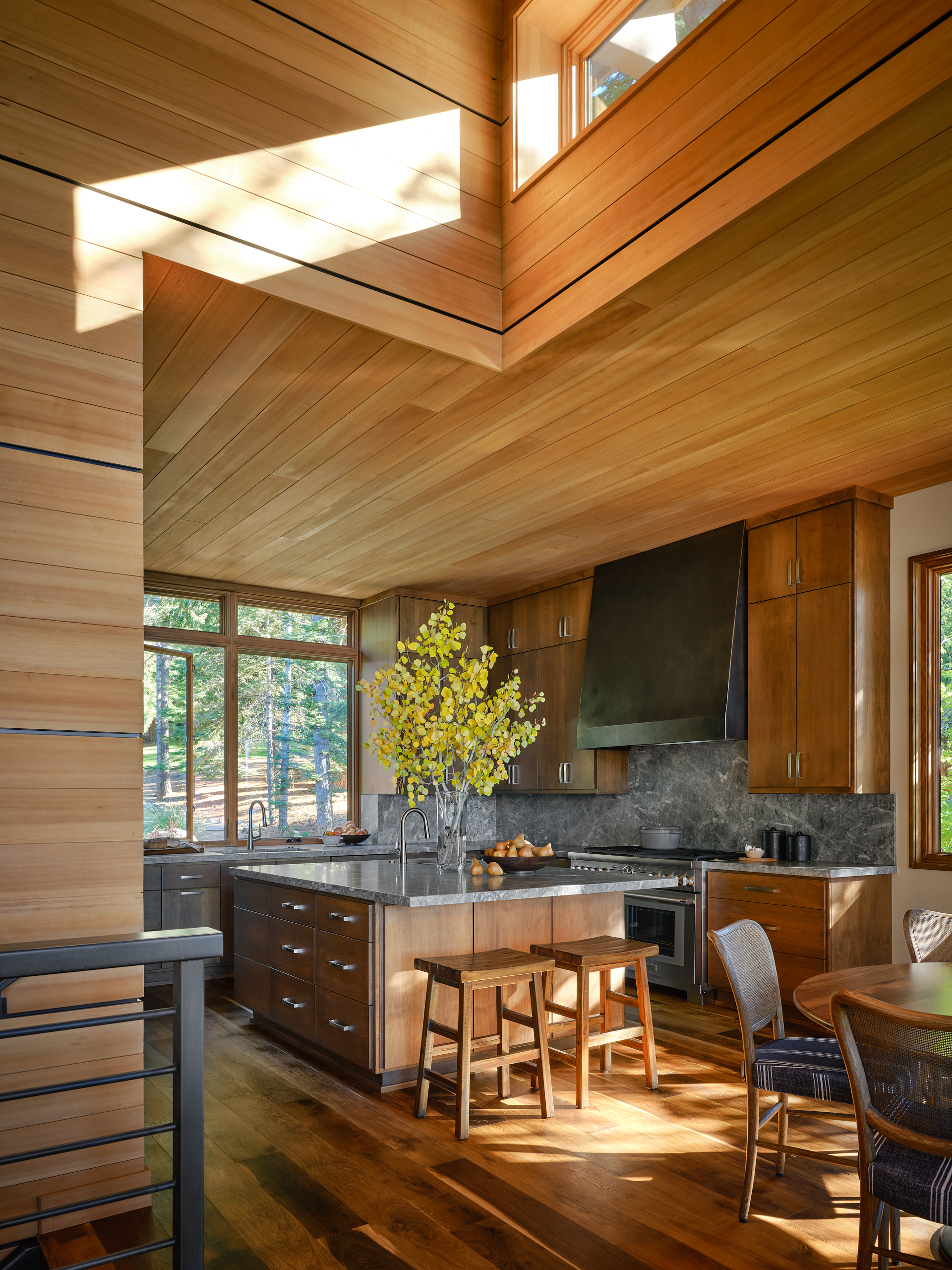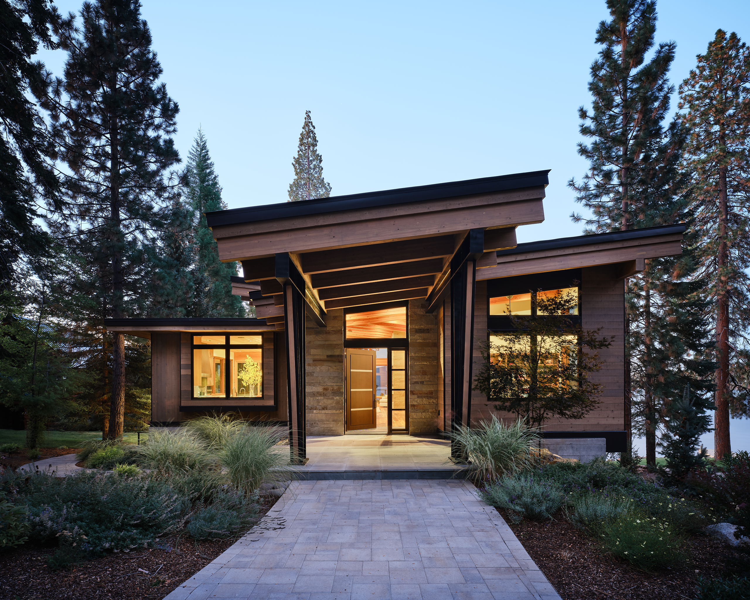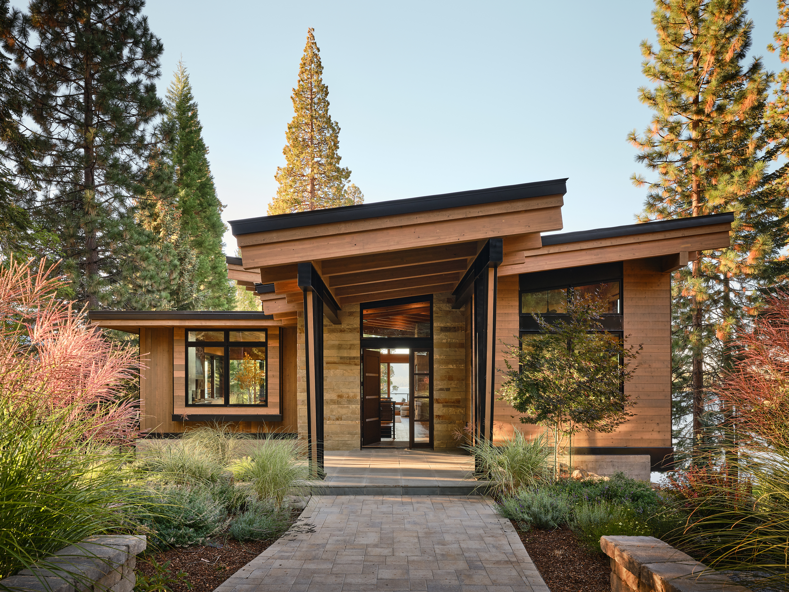This modern lakeside home on Lake Almanor combines contemporary design with natural beauty. Featuring warm wood siding, sleek black steel accents, and expansive glass walls, the design embraces the breathtaking lake and mountain views from every angle.