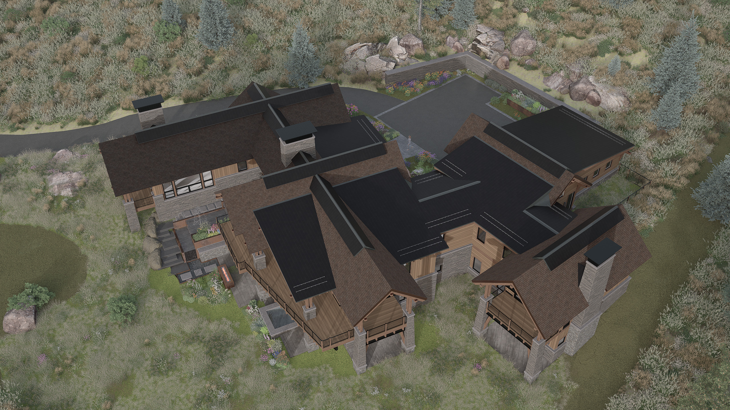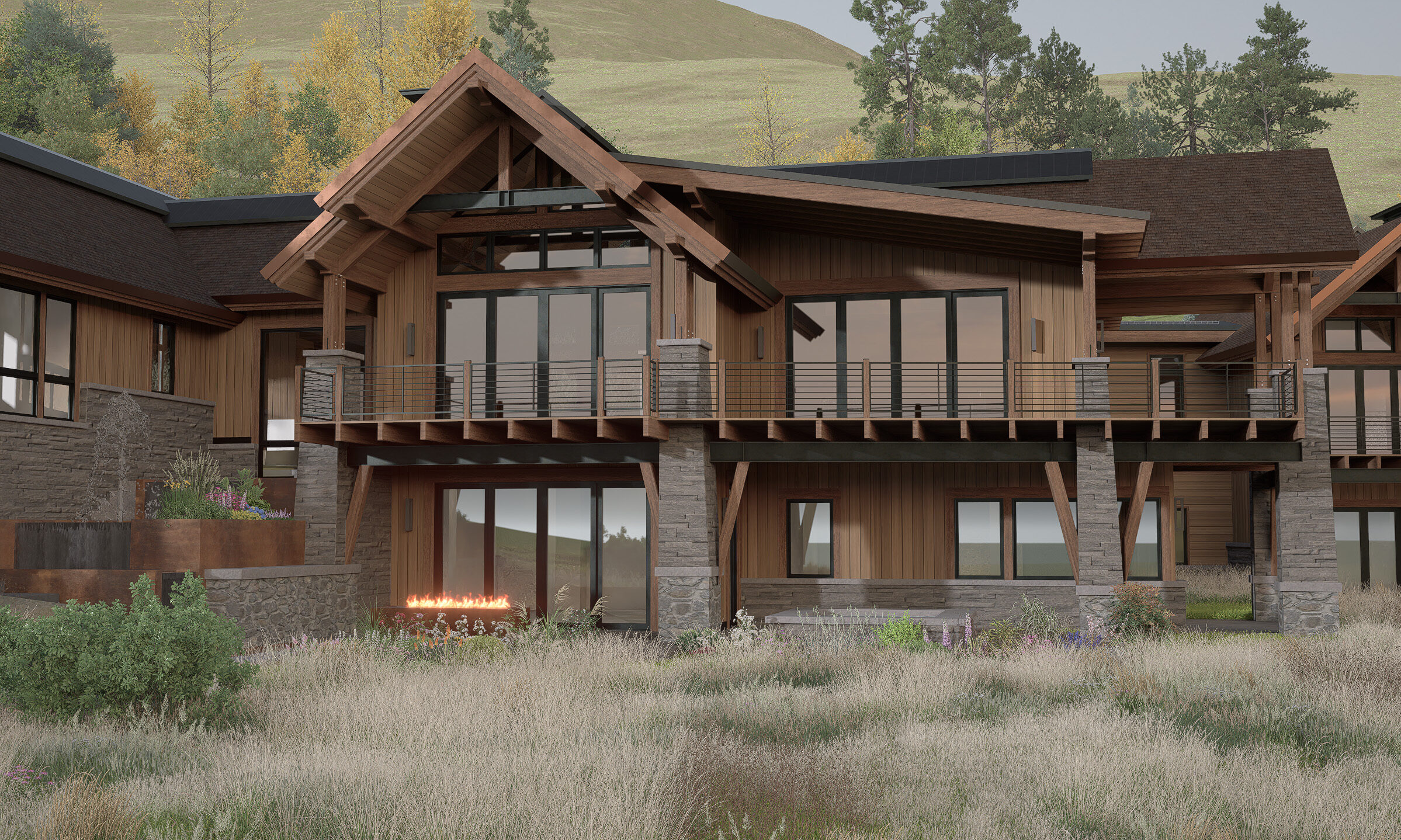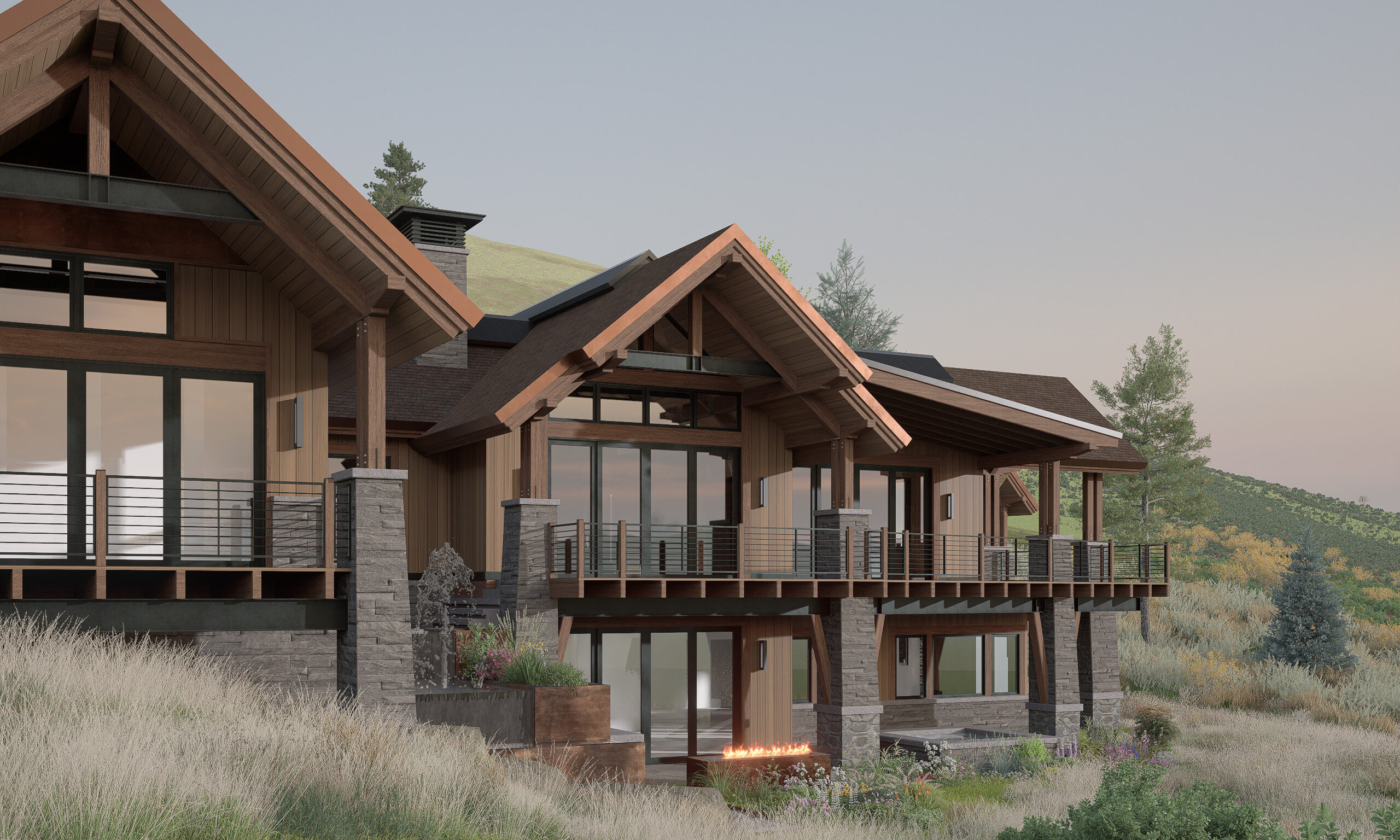 Located in the Marabou community, this multigenerational family home offers panoramic views of Sleeping Giant and the Yampa Valley. The design blends natural materials like timber and stone with modern mountain architecture.