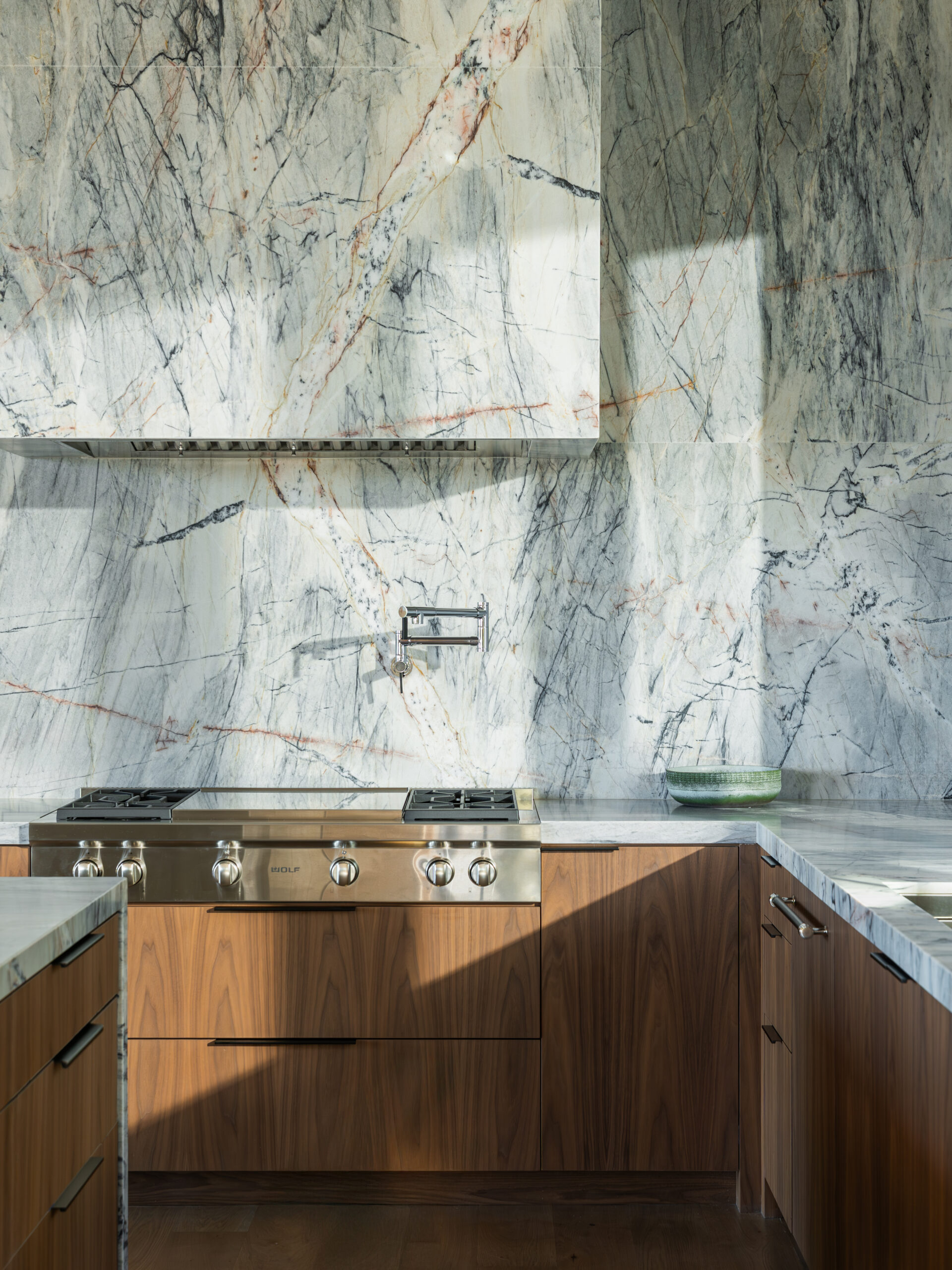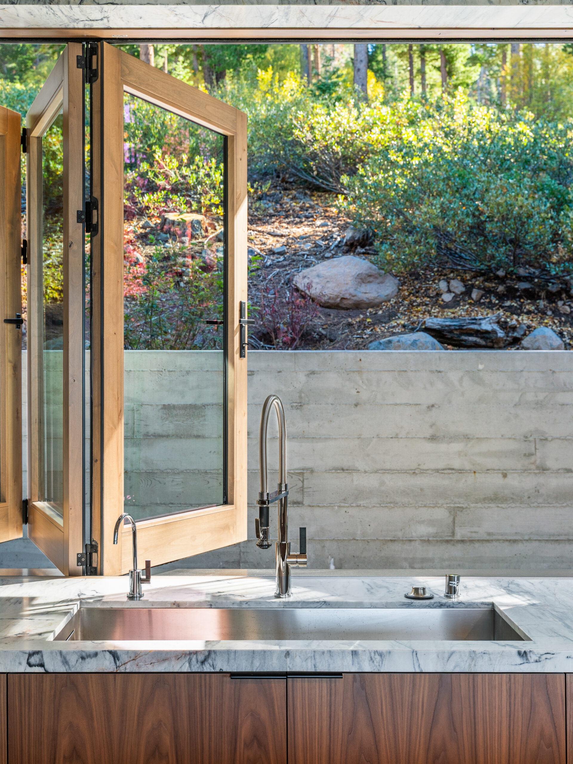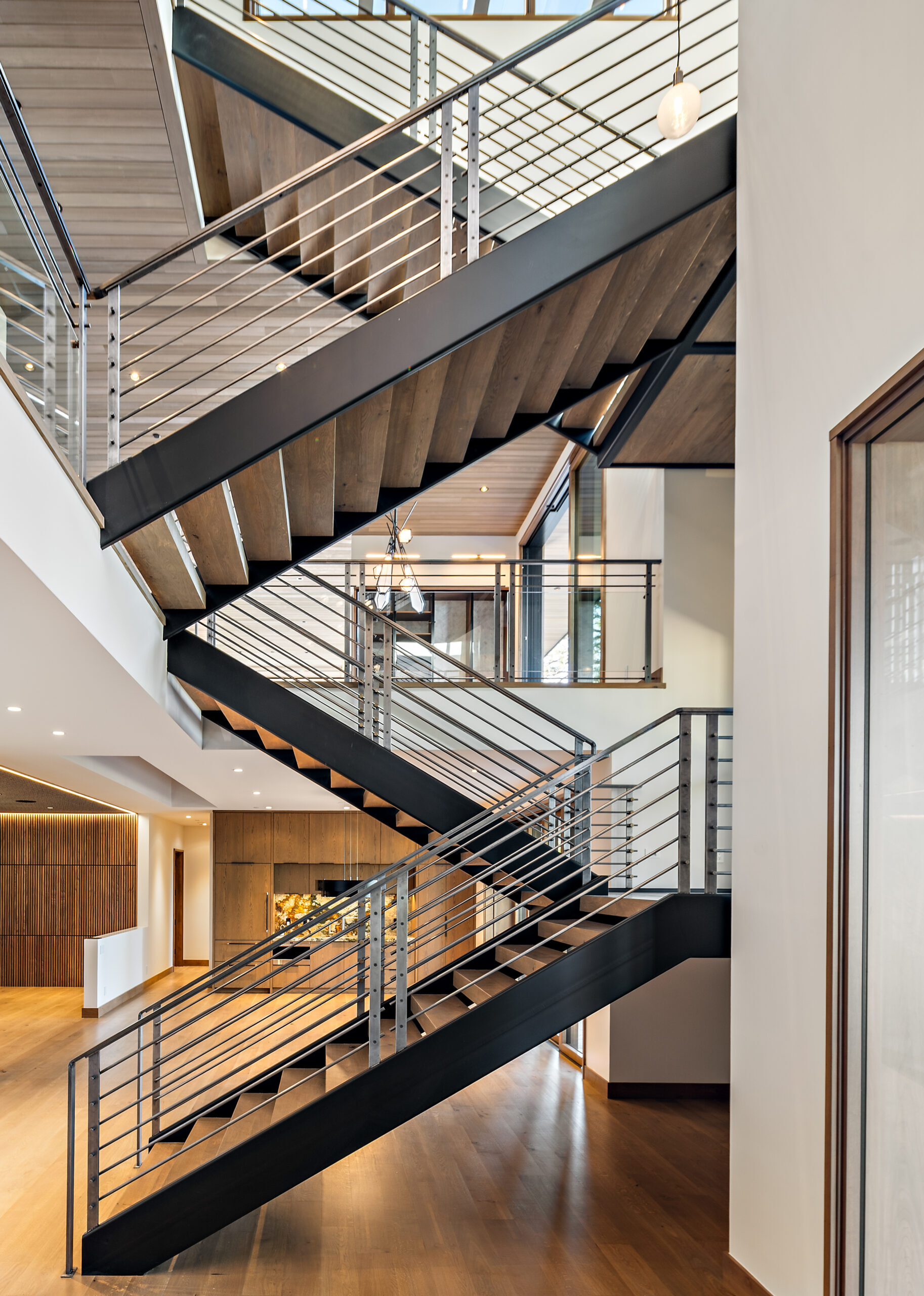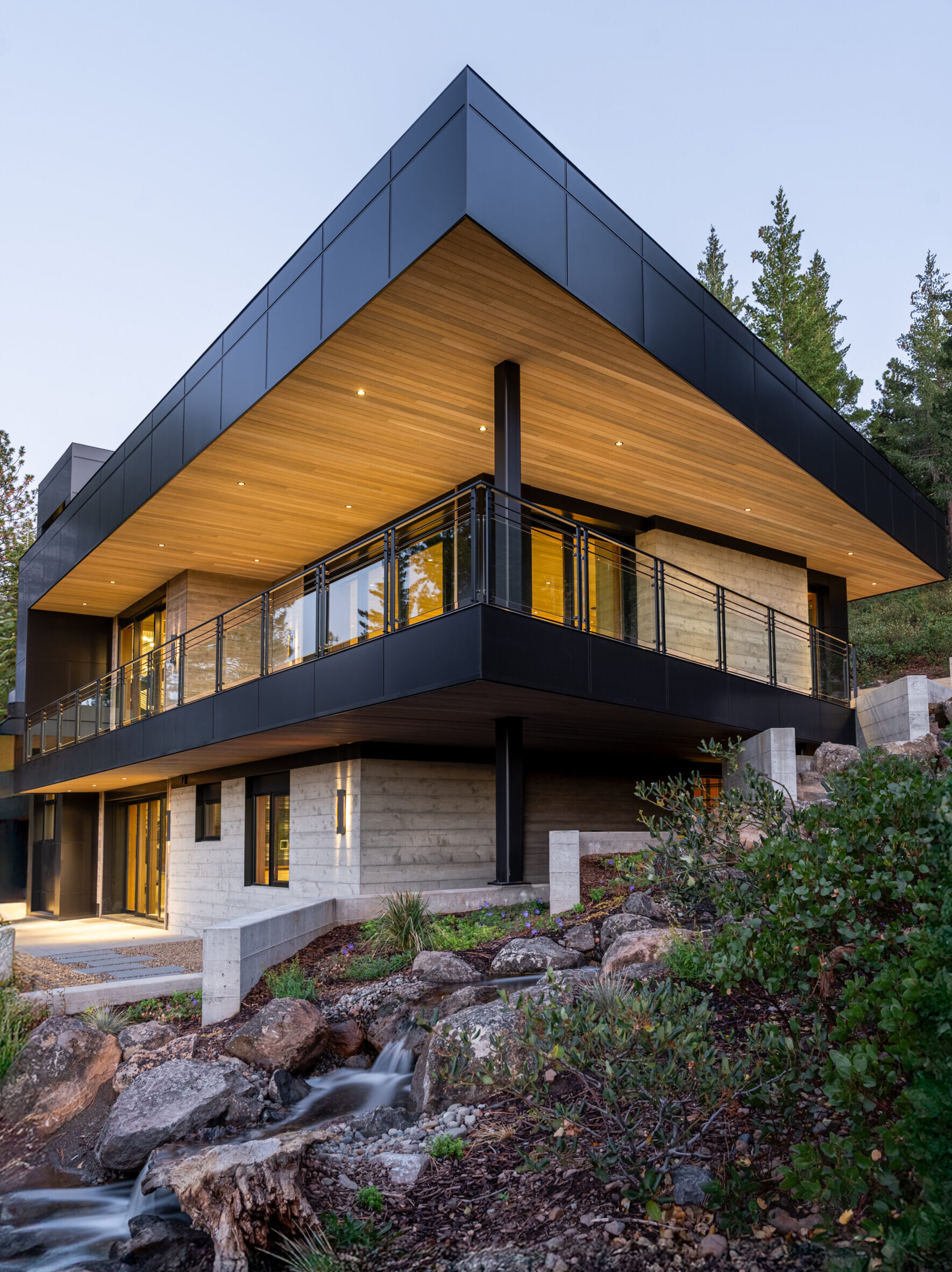When the skis come off, you can get an adrenaline rush from the indoor rock-climbing wall and private gym or relax and recoup at the wellness suites cold plunge, jacuzzi, and sauna. An expansive rooftop deck offers stunning views of Castle Peak, perfect for sunset gatherings and a quiet morning cup of coffee alike. Along the edge of the property, a cascading waterfall flows down the site, adding a tranquil setting to this one-of-a-kind mountain retreat.