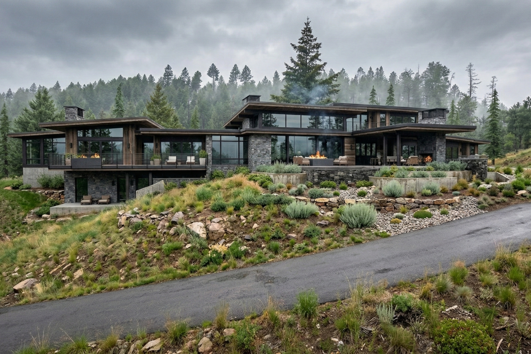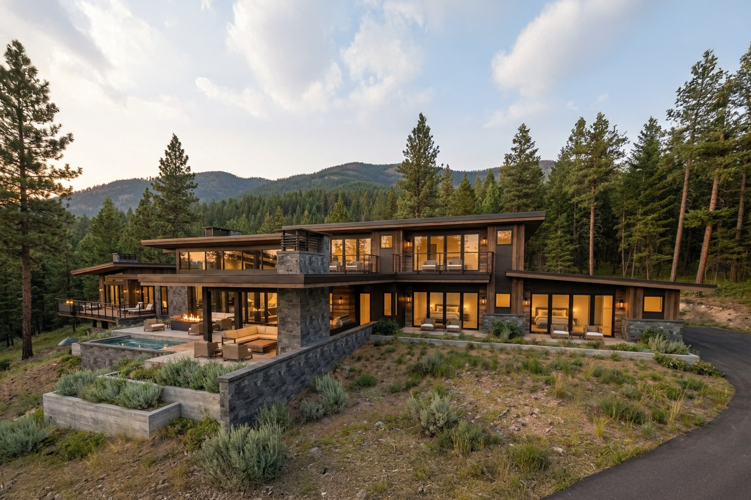 Set within Territory 1889 Golf and Lake Club, this custom residence overlooks and captures breathtaking views of Flathead Lake. This home combines stone, timber, steel, and reclaimed wood with a clean, contemporary design rooted in its surroundings.
